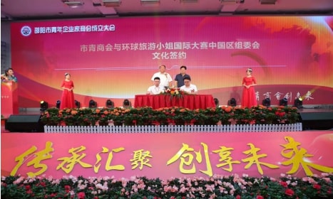 市青年企业家商会自去年底开始筹备,旨在凝聚我市商界的青年才俊,服务邵阳经济建设,服务青年和青年企业发展。现已发展会员74名,平均年龄32岁。成立大会上,商会与环球旅游小姐组委会进行文化推广签约,与建设银行邵阳市分行进行战略合作暨授信签约。